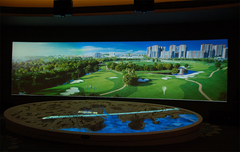 能展現(xiàn)城市中的建筑物、軌道交通、花草樹木、四季變化以及未來發(fā)展等信息,沙盤制作技術(shù)人員利用計算機中的沙盤制作軟件結(jié)合沙盤技術(shù)制作而成的內(nèi)容,通過投影投射到屏幕上展現(xiàn)。