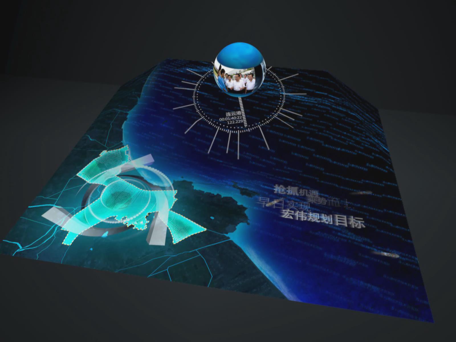 連云港經濟技術開發區位于連云港市東部城區,是1984年12月經國務院批準設立的首批國家級開發區,是連云港市外向型經濟的重要載體和建設國際性海濱城市的核心區域,是連云港市優質資源集中的區域和精華所在。通過投影沙盤展示了連云港經開區的發展變遷、地理位置,這種聲光電的投影展示方式,演示效果非常形象、生動。